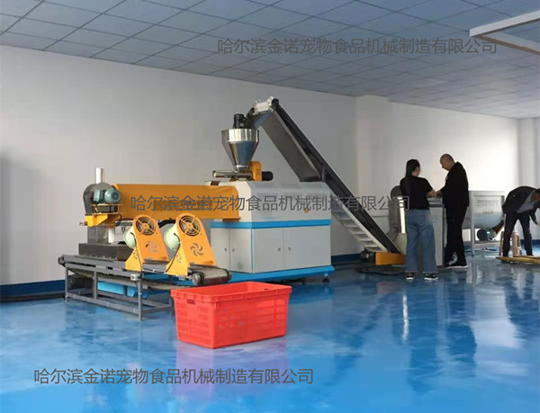 狗糧加工設備JNK200-T5M:1。JNK200-T5M型狗糧加工設備安裝方便、出廠已經(jīng)試機,狗糧機切刀采用直角切刀技術,調試簡單;2。狗糧設備的主軸和切刀小軸均可隨時注入耐高溫潤滑脂,延長狗糧機的軸承使用壽命;3。JNK200-T5M狗糧設備每小時生產狗糧顆粒200公斤。